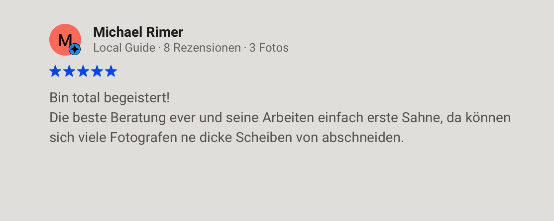 Pistive Rezension von Michael Rimer, dunkelgrauer Text auf hellgrauem Hintergrund.